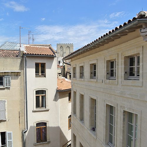 L’immeuble 24 Place du Change dispose d’une très belle façade en pierre de taille proposant des détails architecturaux typiques et remarquables. L’un des appartements du dernier étage a même une vue sur le célèbre Palais des Papes.