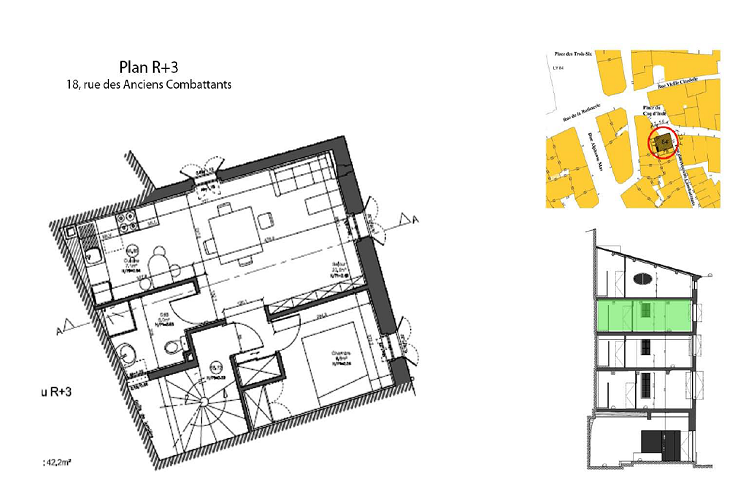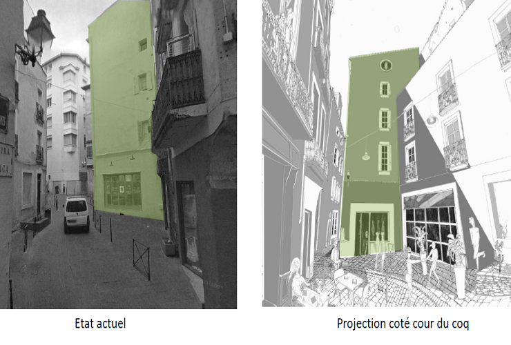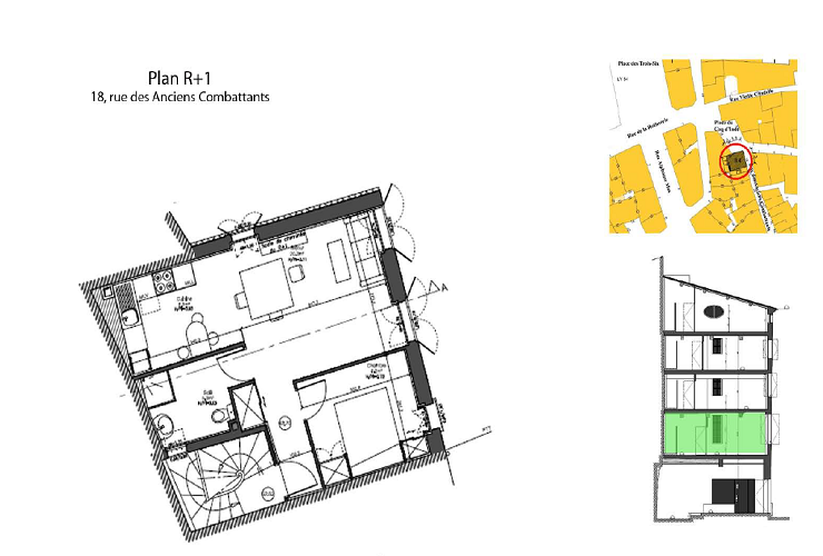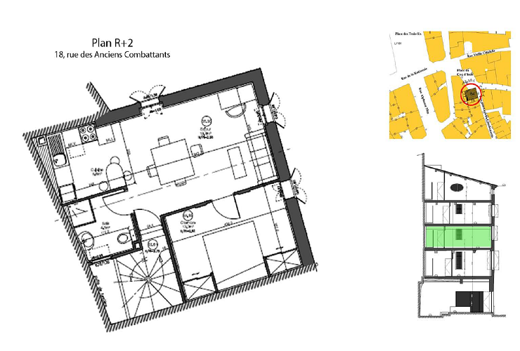En plein coeur du centre historique, l'immeuble de 4 étages est situé sur l'angle de la rue des Anciens Combattants et de la Place du Coq, petite placette qui va bientôt devenir piétonne.