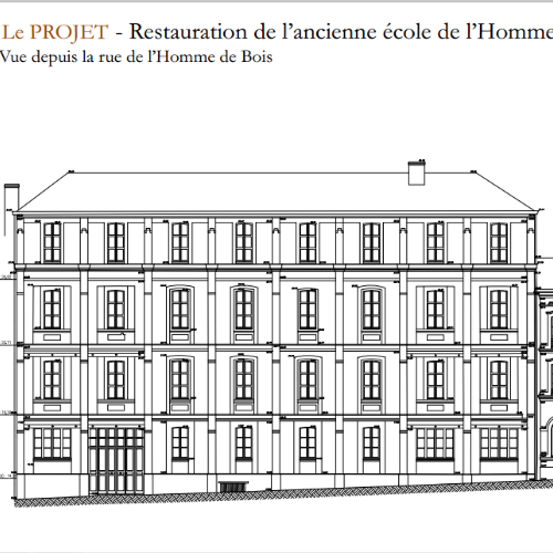 Le projet portant sur l’ancienne Ecole de la rue de l’Homme de Bois vise à restaurer l’ensemble immobilier en vue d’y créer 23 logements et 2 commerces.