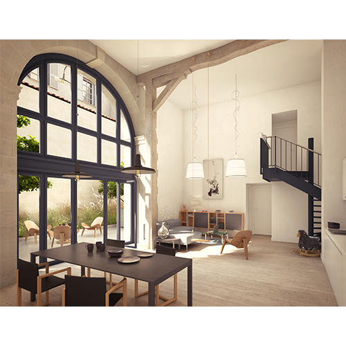 Parce que la lumière est ici primordiale, les fenêtres en ogive seront conservées et de nouvelles ouvertures seront créées. Les résidents profiteront ainsi pleinement de l’absence de vis-à-vis. Leurs dessins, géométriques, sont des variations contemporaines de vitraux d’églises.